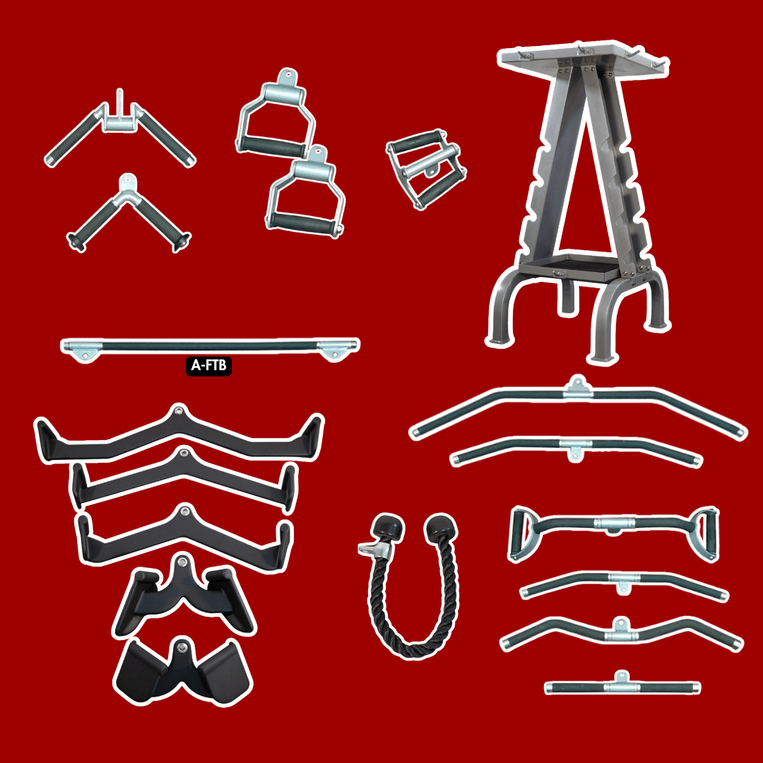 - Functional Grip Cable Attachment Kit: Enjoy a variety of grip options with long, medium, and short functional grip lat bars, as well as a functional grip low pulley bar and underhand low pulley bar.