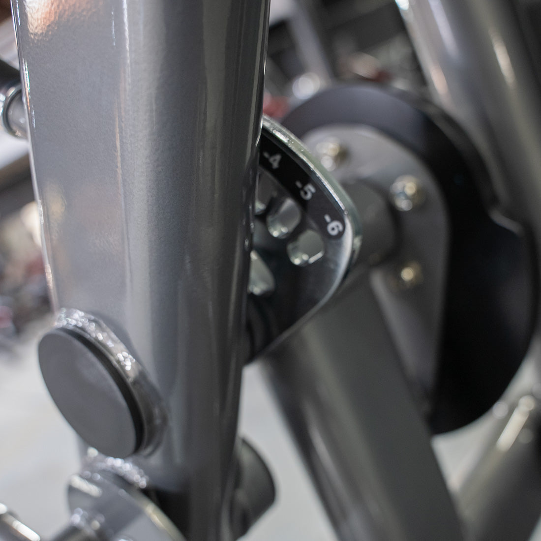 Lever Assisted Roller Pad Adjustment: Easily adjustable ankle roller pad accommodates all leg lengths with effortless lever-assisted positioning for quick user transitions in high-traffic environments.