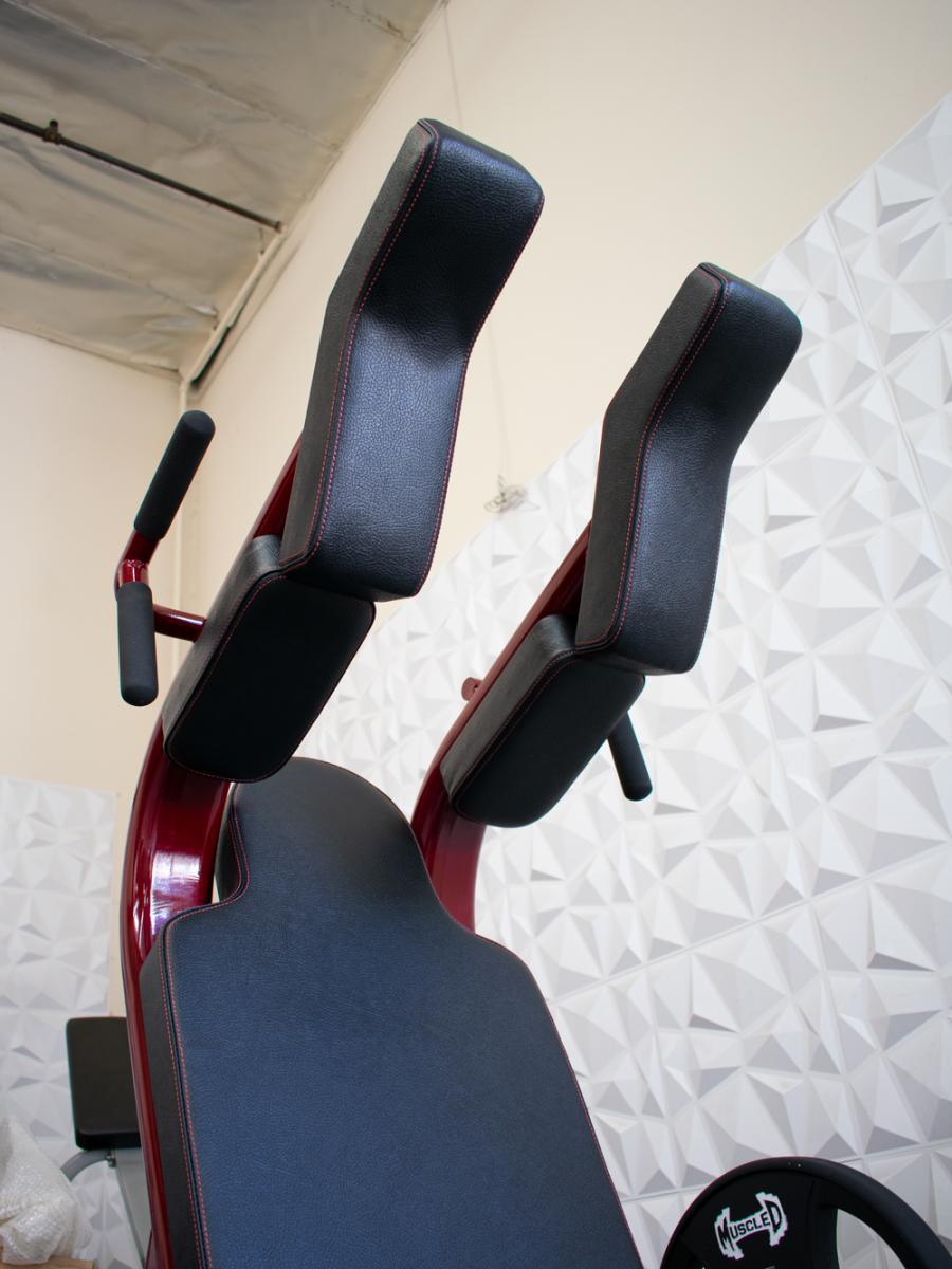 Designed for both comfort and endurance, the machine features double-stitched commercial-grade upholstery. This reinforced padding resists wear over time and provides firm, supportive cushioning for the shoulders and back, ensuring comfort during intense squat sessions.