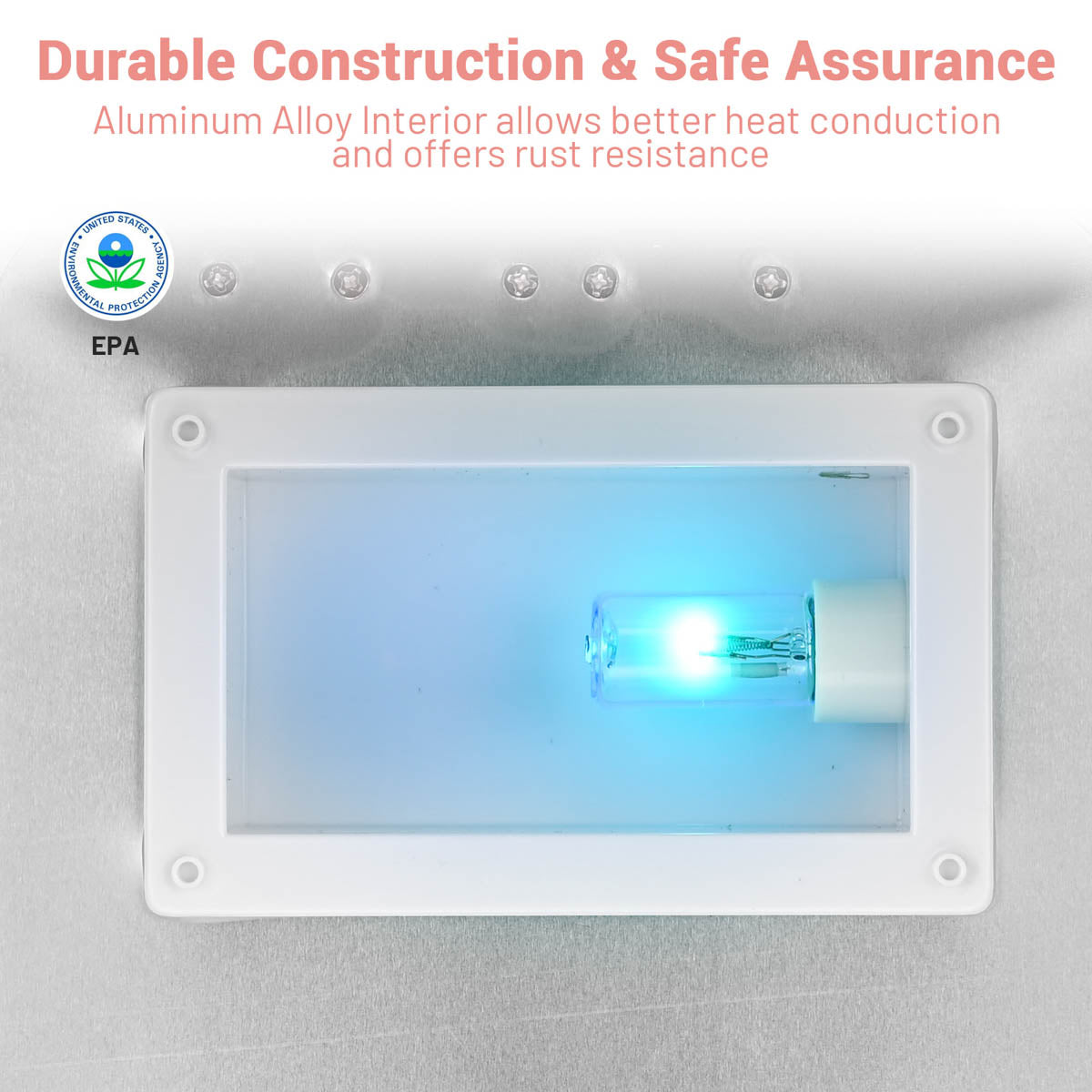 - Combines Radiation Lighting, Ozone Generating and Heating Functions Together