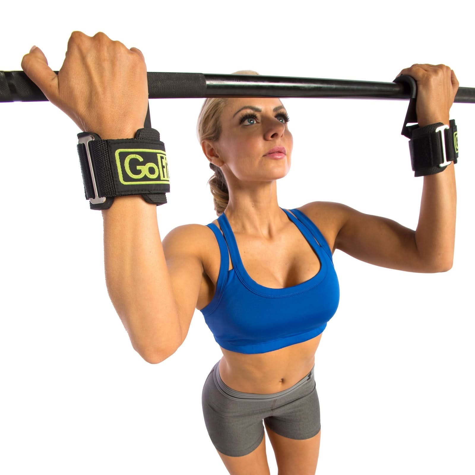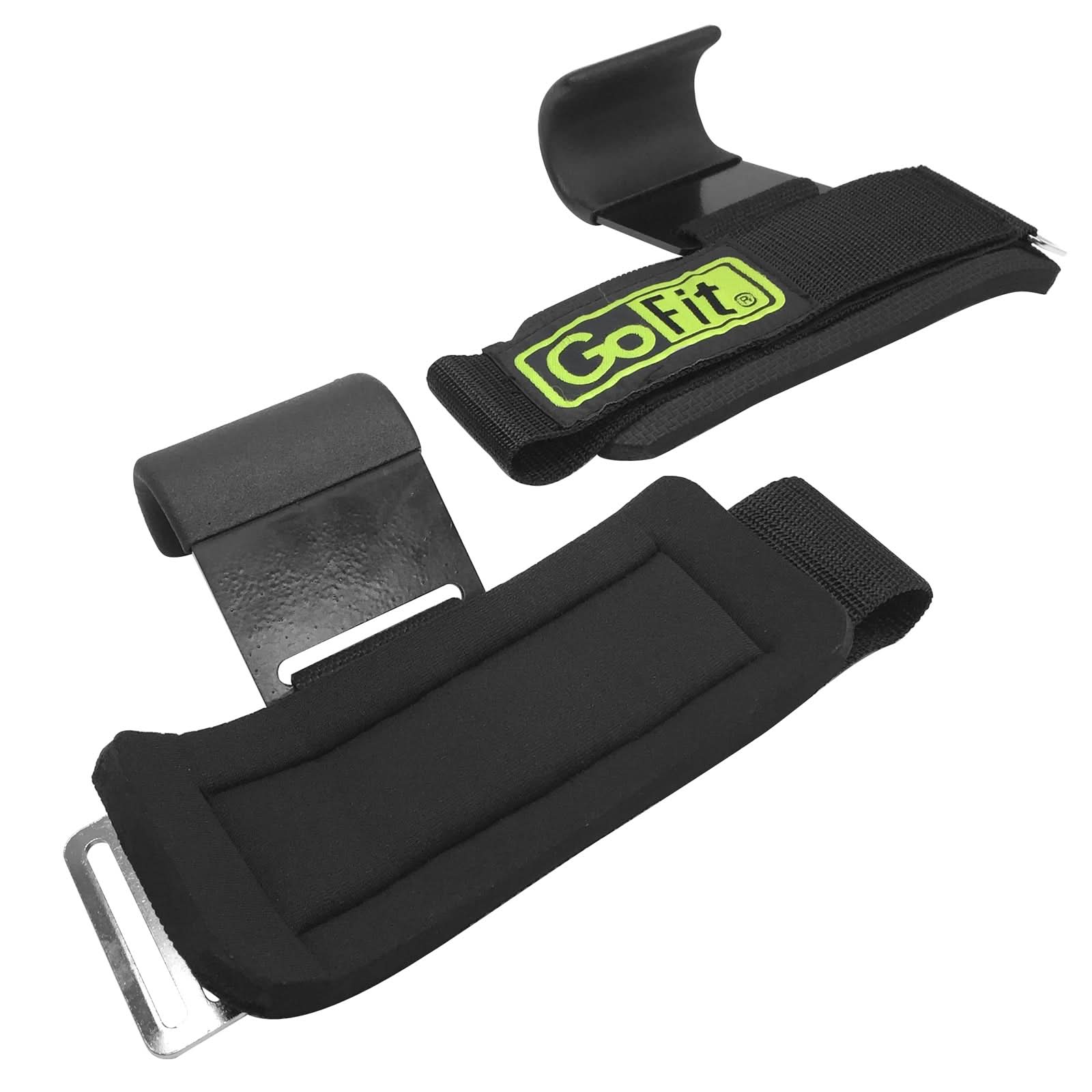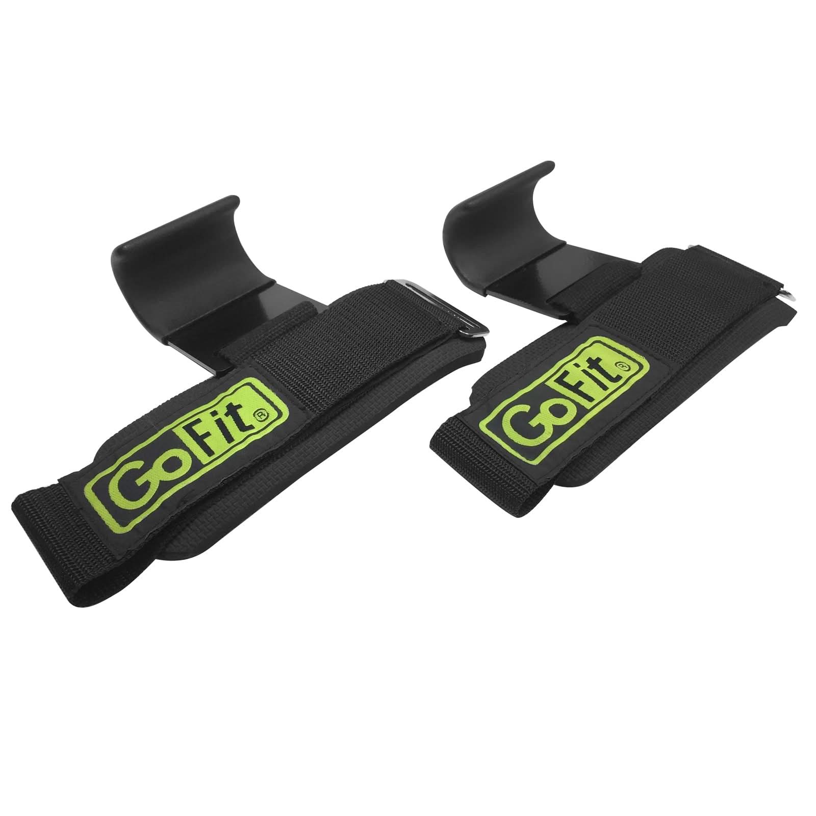 Maximize gains and reduce hand fatigue with GoFit Ultra Pro Lifting Hooks! These solid steel lifting hooks are the perfect accessories to enhance your grip while supporting your wrists, so you can work with more weight for longer durations. Simple to use—the coated steel hooks simply hook over the weight bar to give you a stronger, more secure hold. Durable webbed wrist wraps with thick neoprene padding provide firm and comfortable support for heavy lifts. Get the most out of those last reps! Add GoFit Ultra Pro Lifting Hooks to your weight program and enhance your grip for lat pull downs, shrugs, dead lifts, low pulls, pull ups and more.