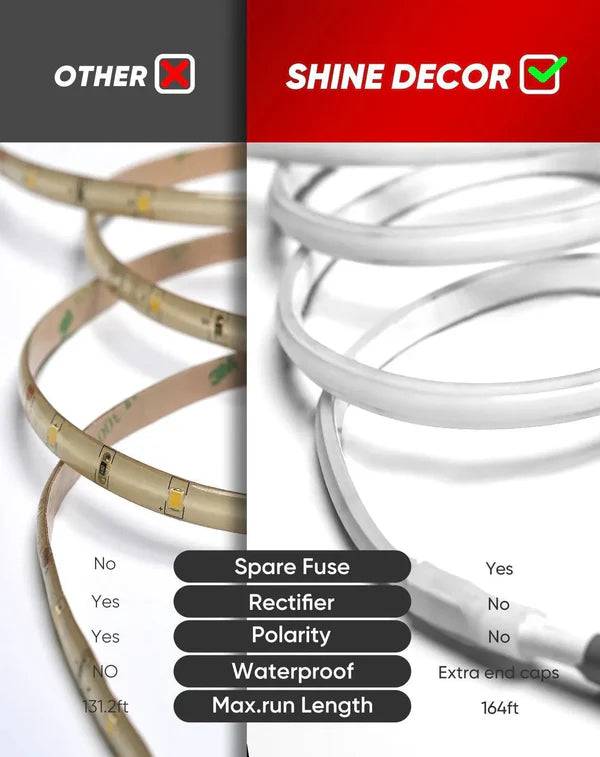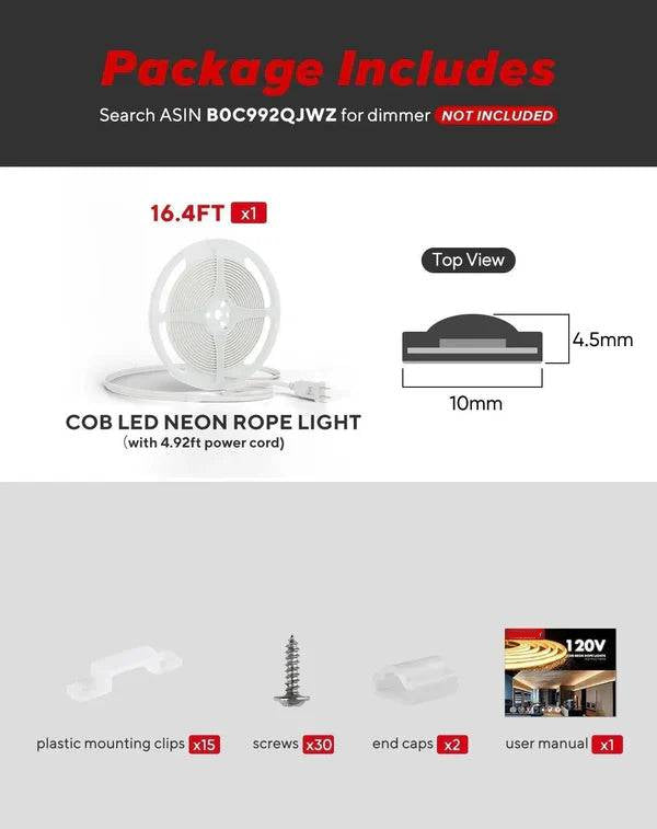- Flicker Free: The COB LED neon strip light is designed to be flicker-free, with no visible flicker to the naked eye. Additionally, video recordings taken from a distance of 1 meter or more will also appear flicker-free.
