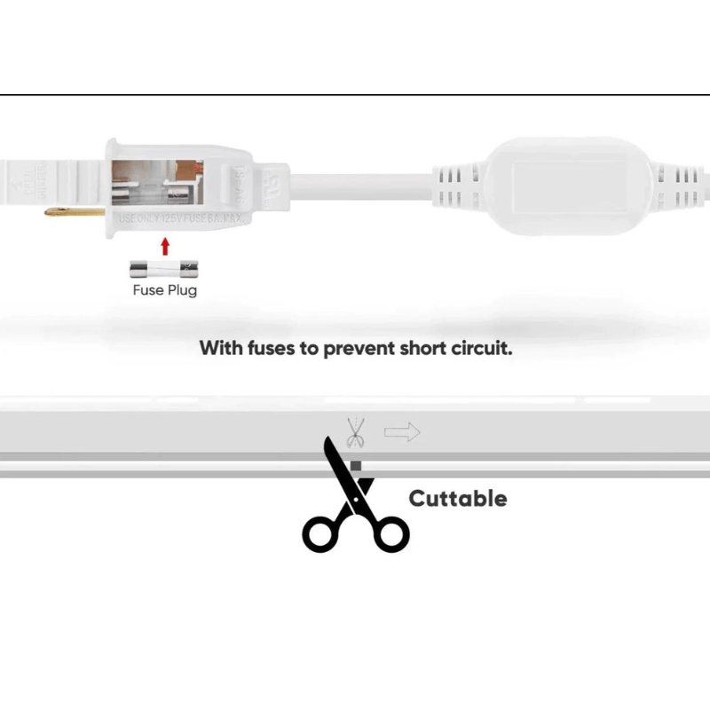 110-120V Cool White LED Neon Rope Light -6300K-8mm x 16mm-6.5W/Meter and 226LM/W -Dimmable, Flexible, IP65 Waterproof, Cuttable for Home & Commercial Use