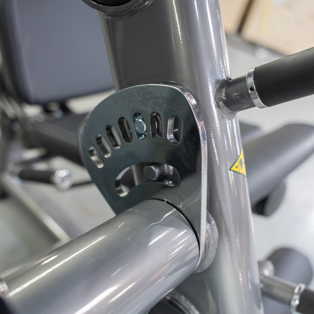 Lever Assisted Roller Pad Adjustment: Easily adjustable ankle roller pad accommodates all leg lengths with effortless lever-assisted positioning for quick user transitions in high-traffic environments.