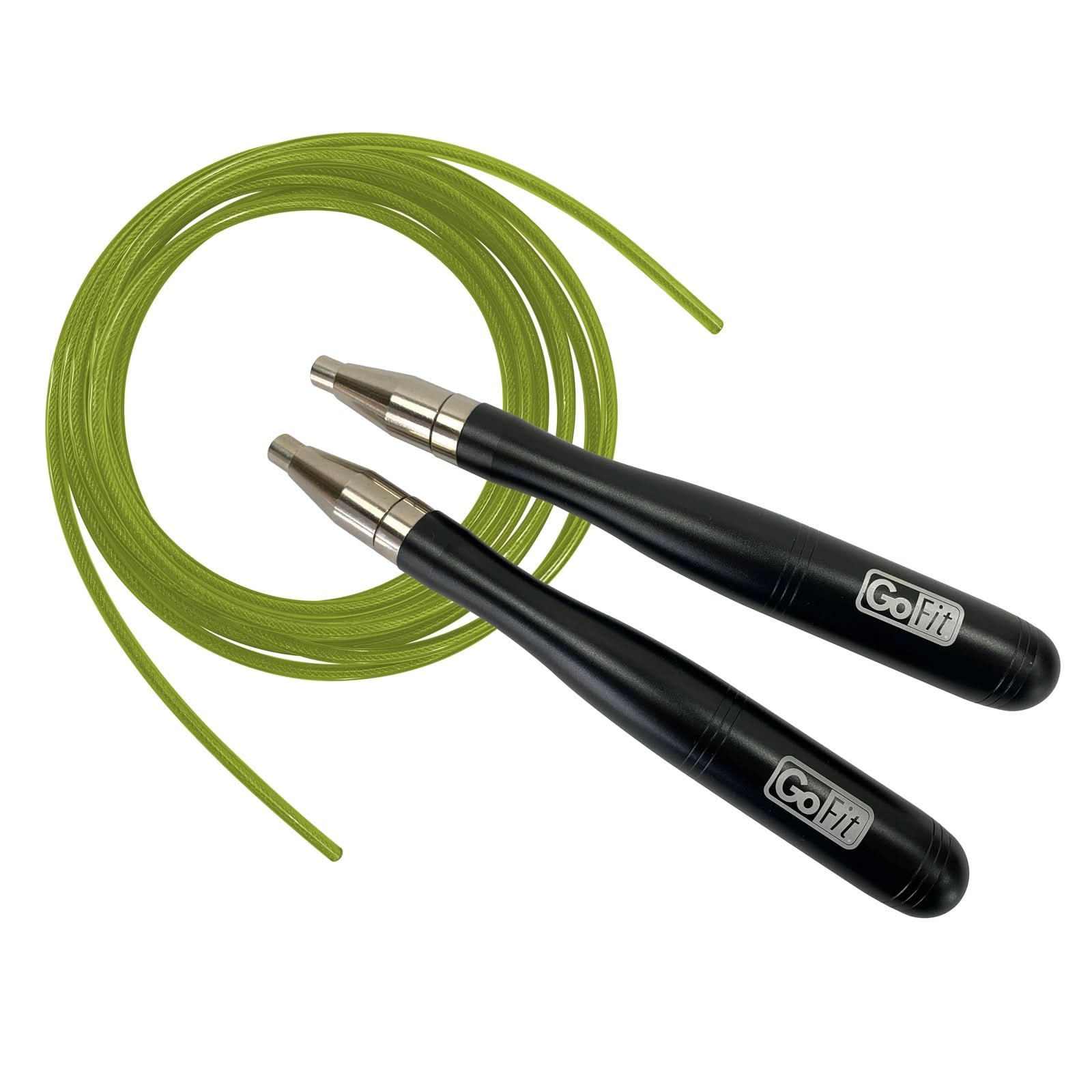 Maximize any jump rope workout with the speed and flexibility of GoFit’s Adjustable Cable Rope. To install the rope and adjust its length, simply press the spring-loaded, self-locking swivel ends. Ergonomically-balanced handles, each store 7 inches of cable rope.