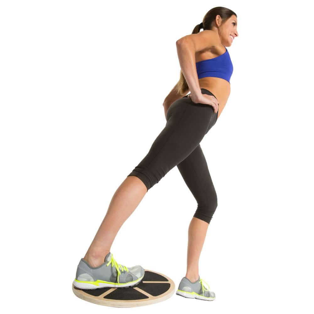 Challenge your core strength and balance with the GoFit Premium Wood Wobble Board. It assists in the development of muscle endurance, increased stability, and is great for lower body rehabilitation. The Wood Wobble Board features a non-slip surface, an easy-to-adjust base, and includes a professionally developed lamented training manual with easy to follow instructions. The adjustable base is there for you to increase, or decrease, the difficulty of each exercise to your fitness level—making this the perfect tool for any balance and strength training program. Time to get on board and challenge that core!
